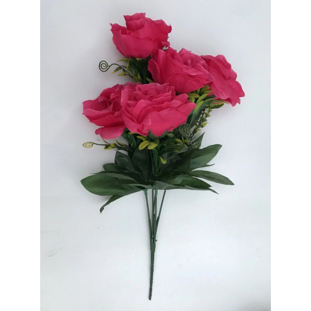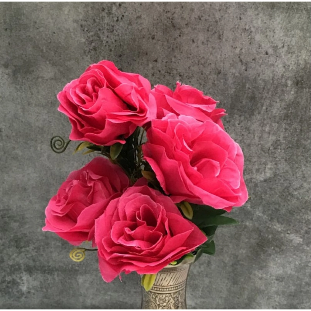 Artificial Flowers Bunch Bouquet Of 5 Roses For Home Decoration (Dark Pink, Material:Silk, Polyester)