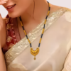 Celebrate sacred elegance with the Eternal Lakshmi Heritage Mangalsutra — a regal expression of marital devotion and divine grace. Featuring a beautifully sculpted Lakshmi pendant in antique gold, suspended on twin strands of classic black and gold beads, this long mangalsutra embodies timeless tradition with a luxurious touch.
