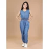 Girl’s Denim Solid Short Sleeve V-Neck Dress