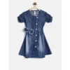 Girl’s Denim Solid Sleeveless Shirt collar Dress