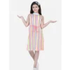 Girl’s Polyester Crepe Striped Short Sleeve Shirt collar Dress