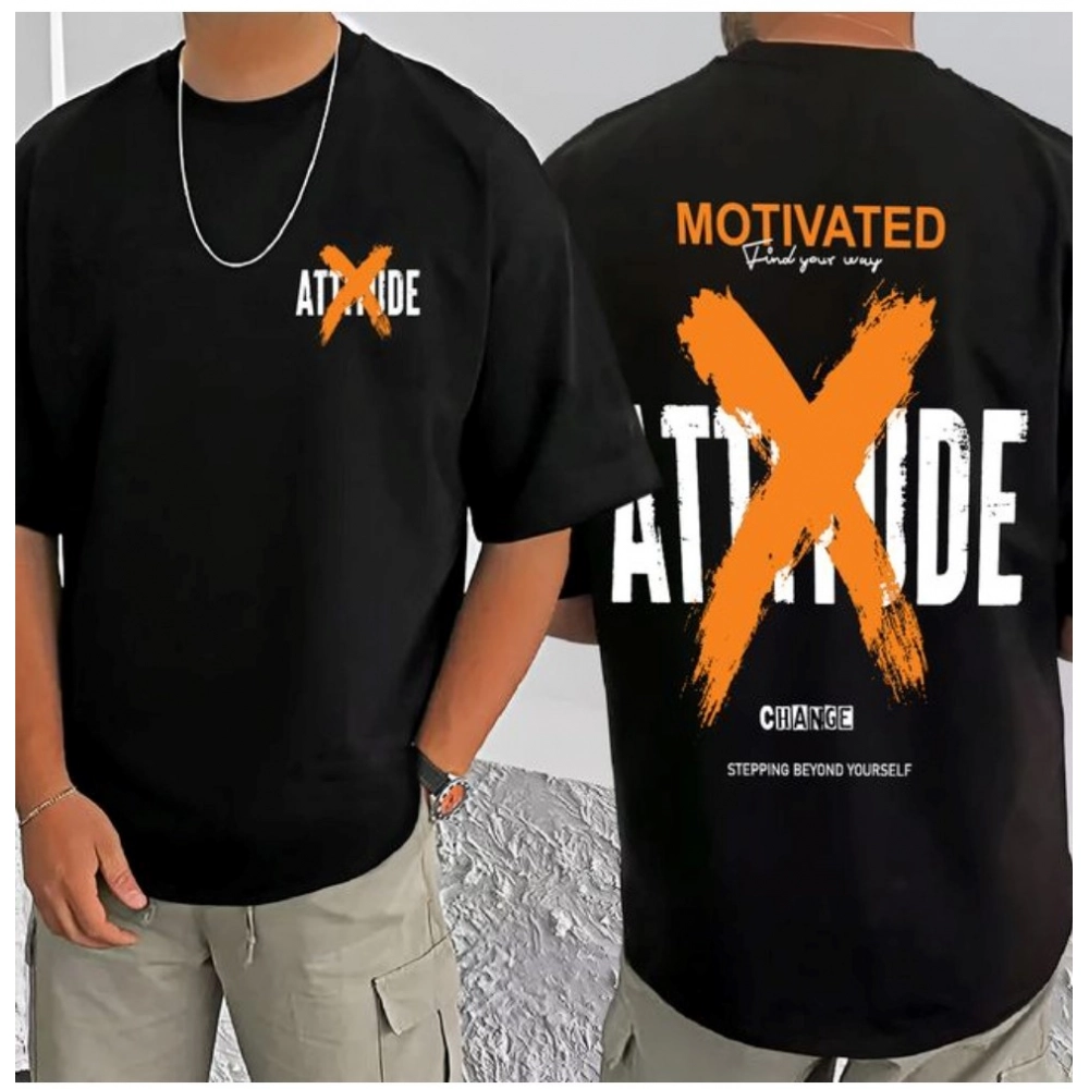Men’s Casual Cotton Blend Printed Round Neck Half Sleeve T-Shirt (Black)