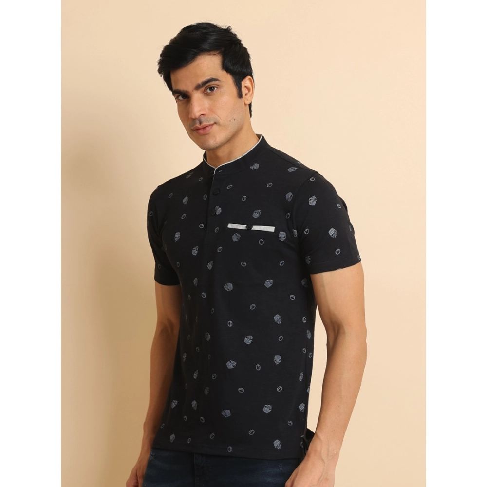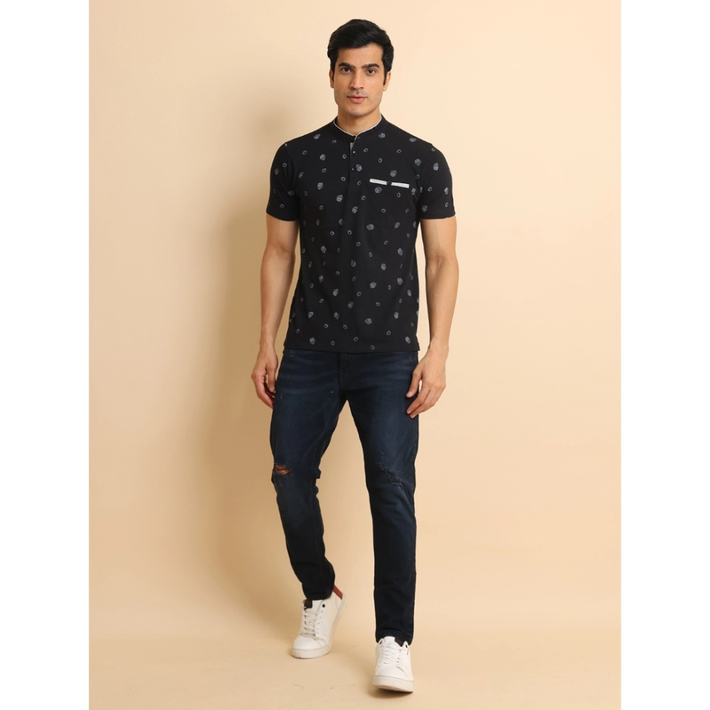 Men’s Casual Cotton Printed Mandarin Collar Half Sleeve T-Shirt