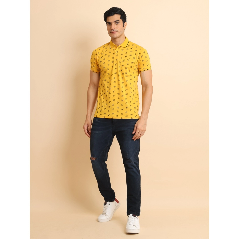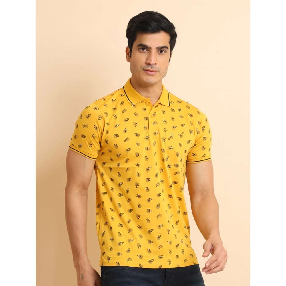 Men's Casual Cotton Printed Polo Neck Half Sleeve T-Shirt (Mustard)Men’s Casual Cotton Printed Polo Neck Half Sleeve T-Shirt (Mustard)