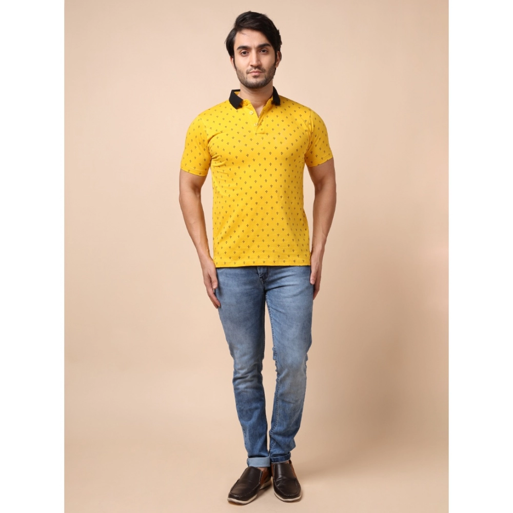 Men’s Casual Cotton Printed Polo Neck Half Sleeve T-Shirt