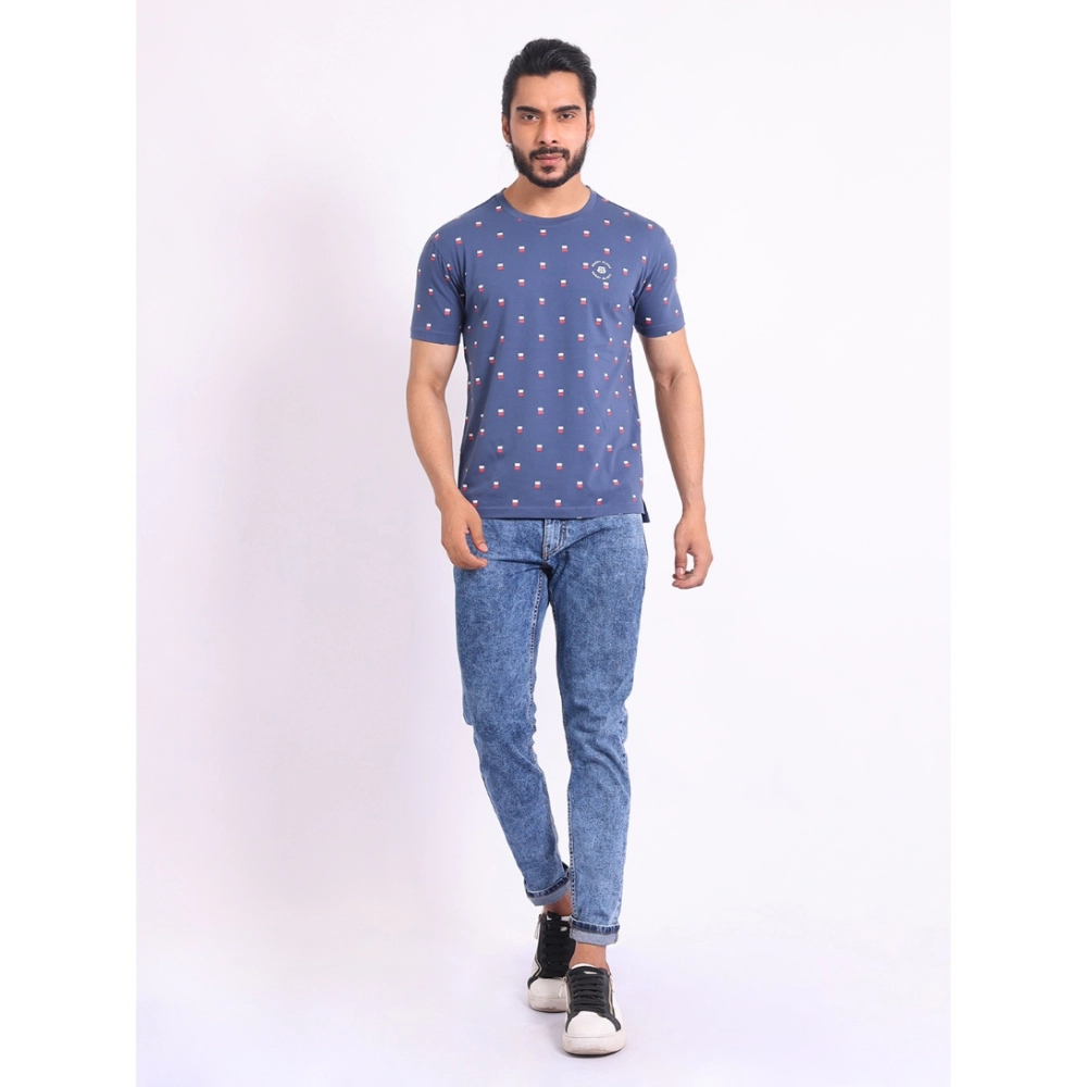 Men’s Casual Cotton Printed Round Neck Half Sleeve T-Shirt