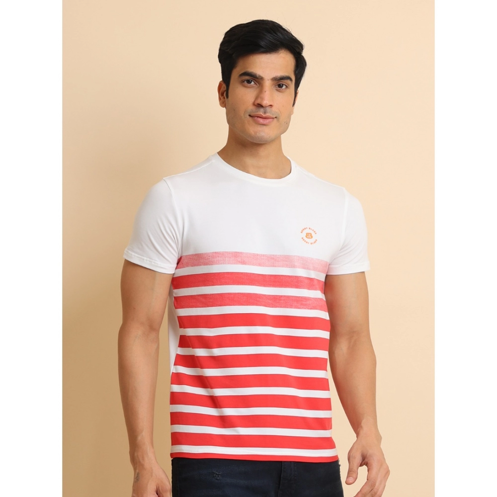 Men's Casual Cotton Printed Round Neck Half Sleeve T-Shirt (Red)Men’s Casual Cotton Printed Round Neck Half Sleeve T-Shirt (Red)