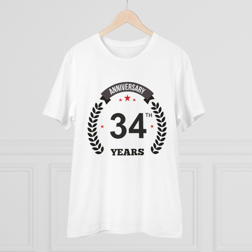 Men’s PC Cotton 34th Anniversary Printed T Shirt (Color: White, Thread Count: 180GSM)