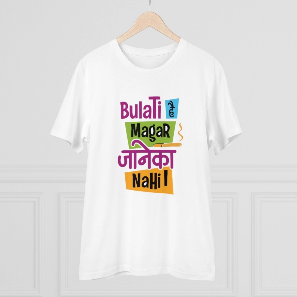 Men’s PC Cotton Bulati Hai Magar Jane Ka Nahi Printed T Shirt (Color: White, Thread Count: 180GSM)