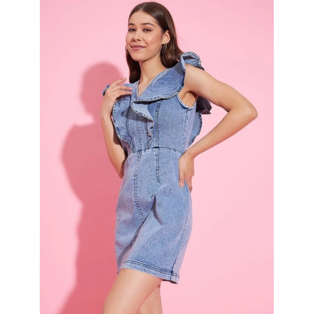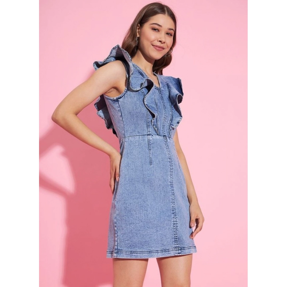 Women’s Denim Solid Flutter Sleeve Dress