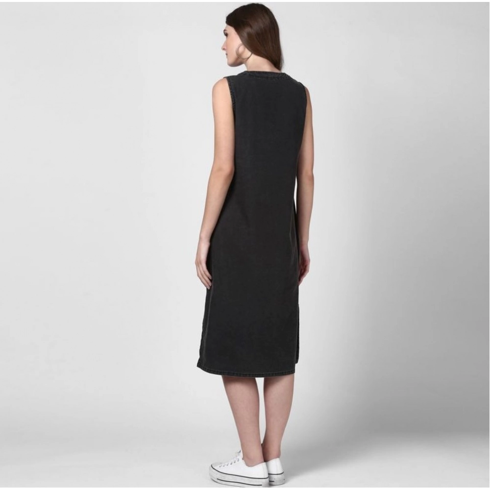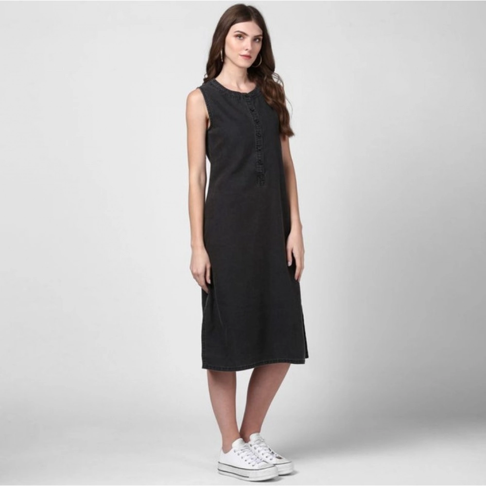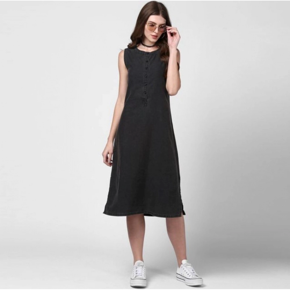 Women’s Denim Solid Sleeveless Dress