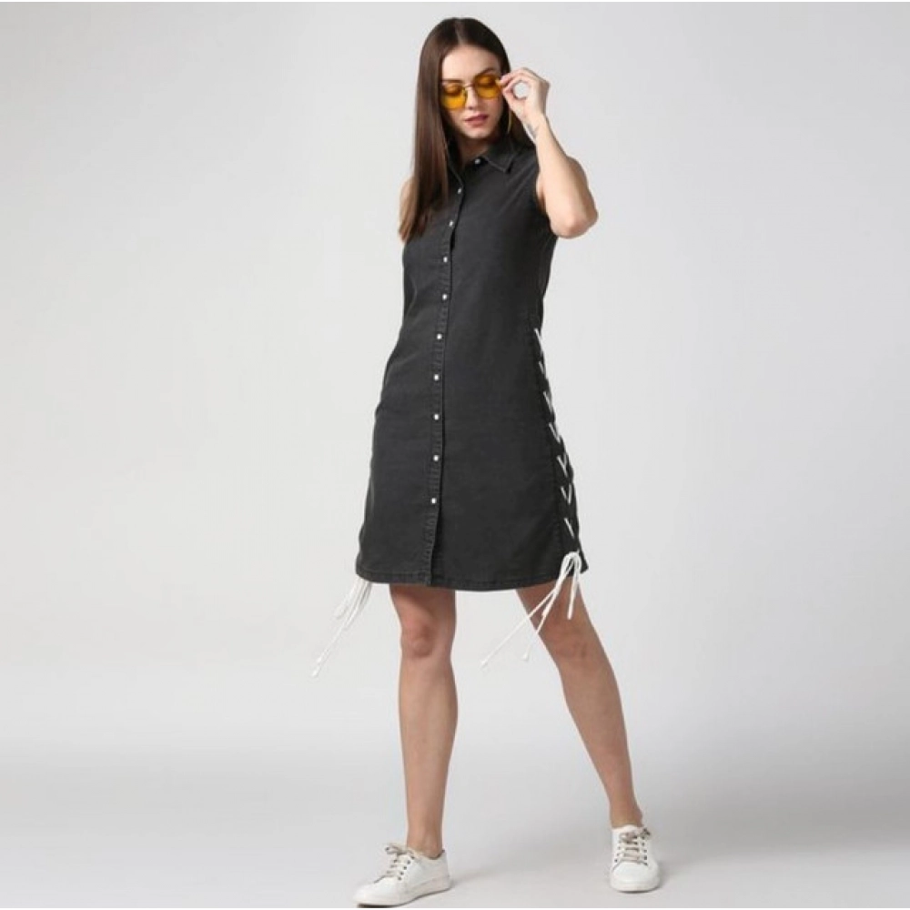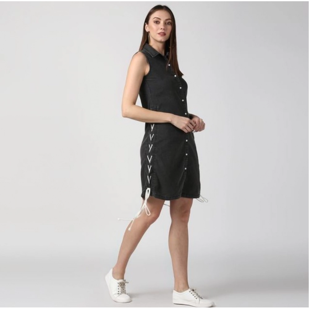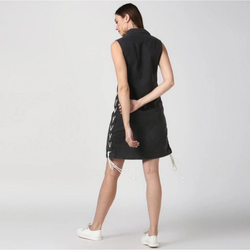 Women’s Denim Solid Sleeveless Dress