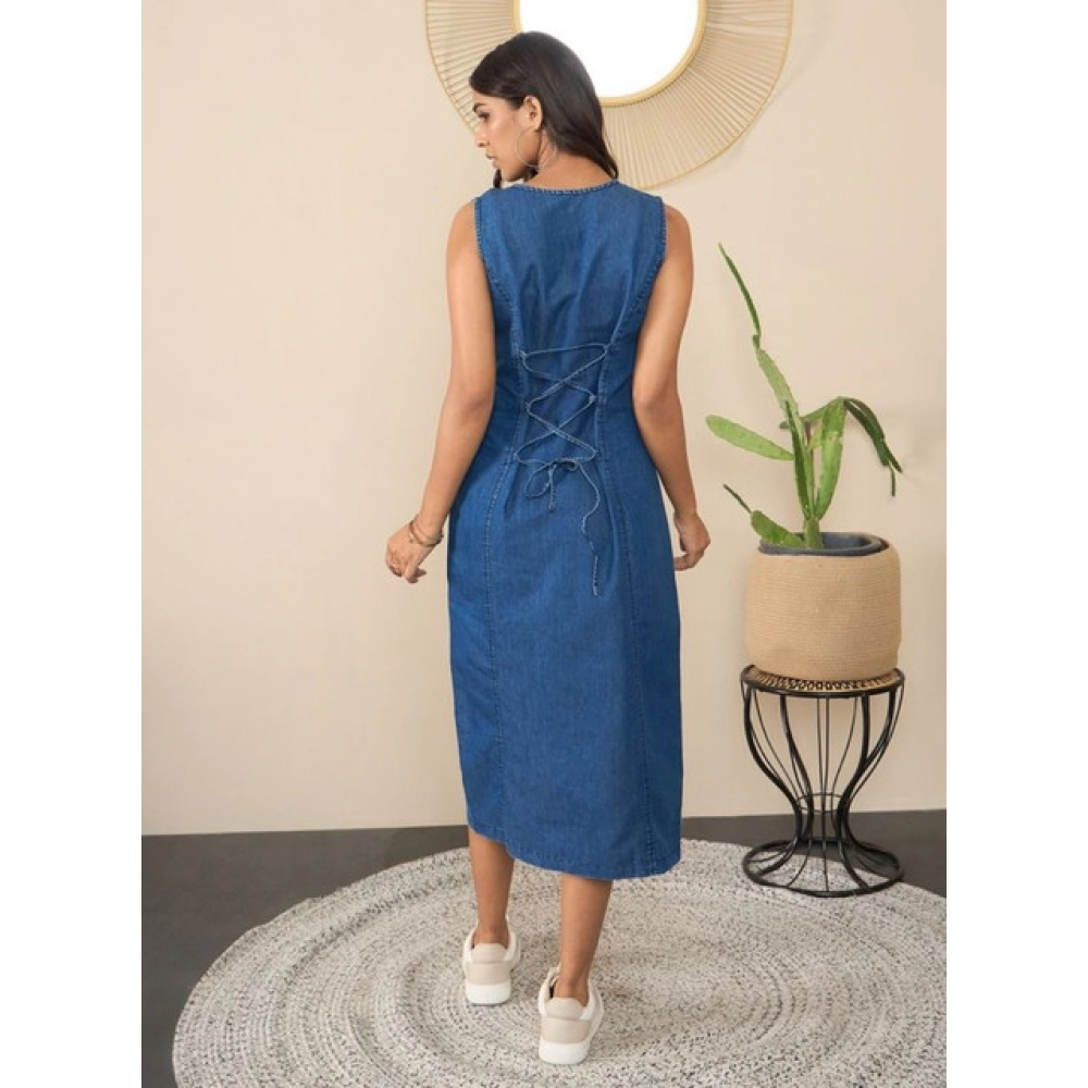 Women’s Denim Solid Sleeveless Dress