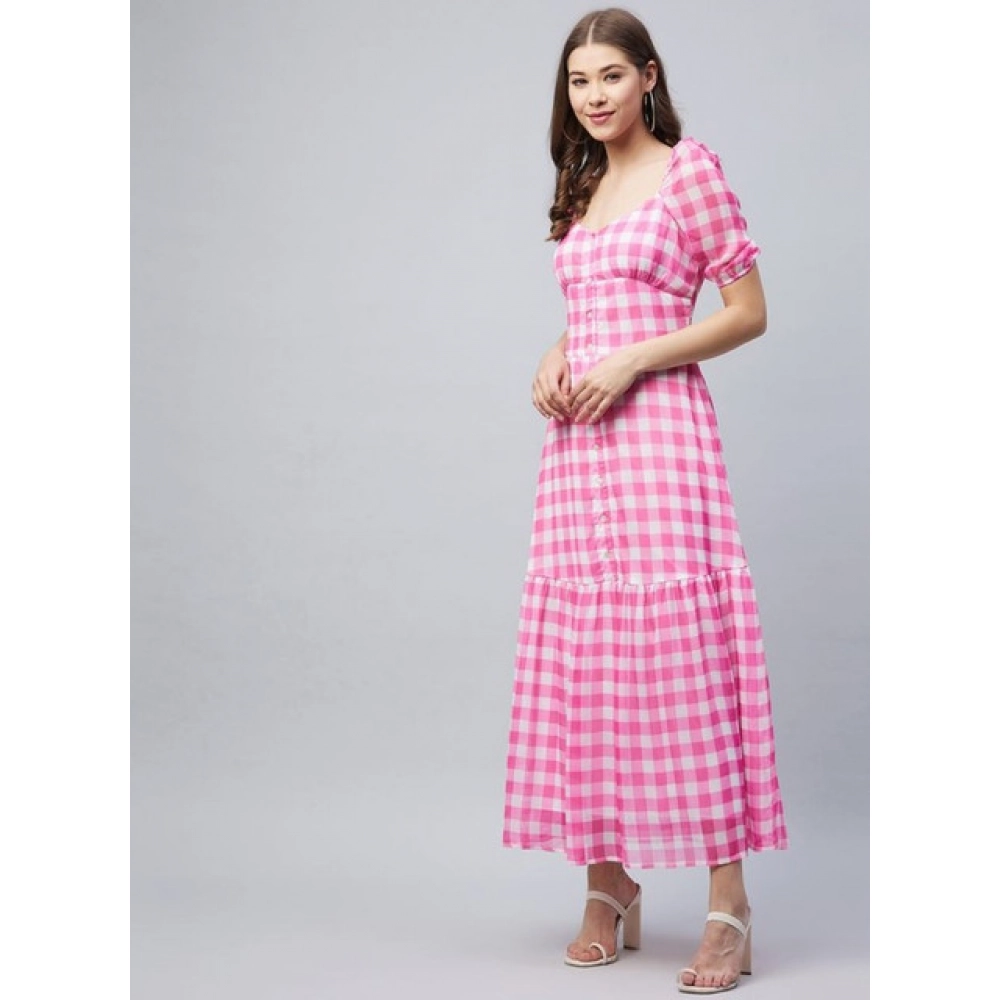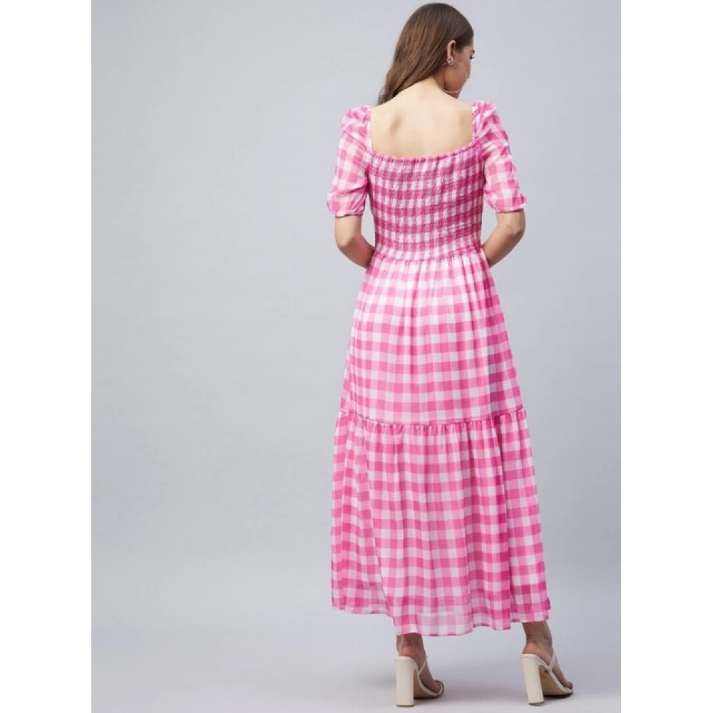Women’s Polyester Georgette Checkered Half Sleeve Dress