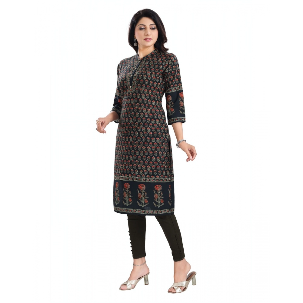 Women’s 3/4th Sleeve Cotton Blend Tunic Long Kurti (Black)