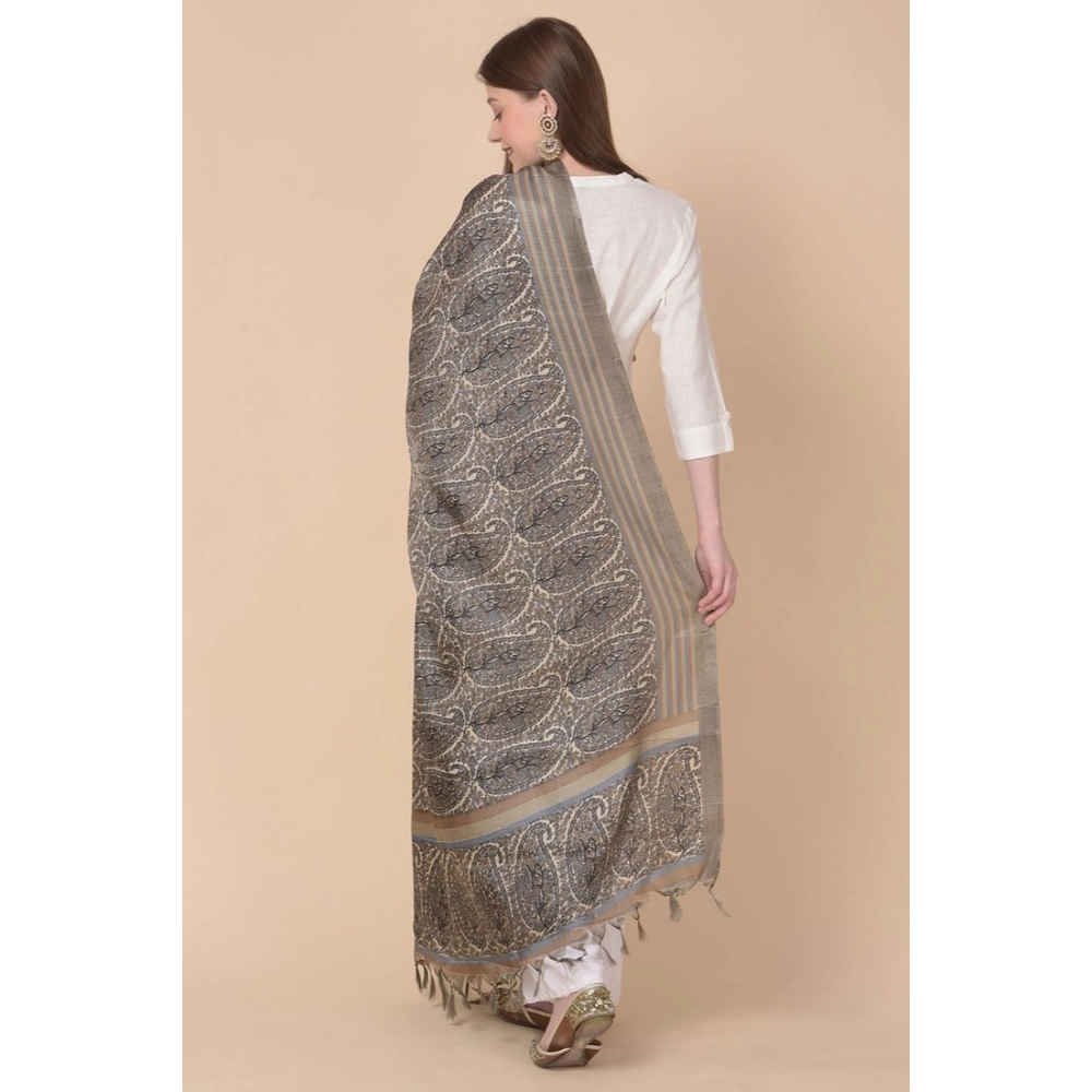Women’s Art Silk Printed Dupatta (Grey, Length: 2.25 to 2.50 Mtr)