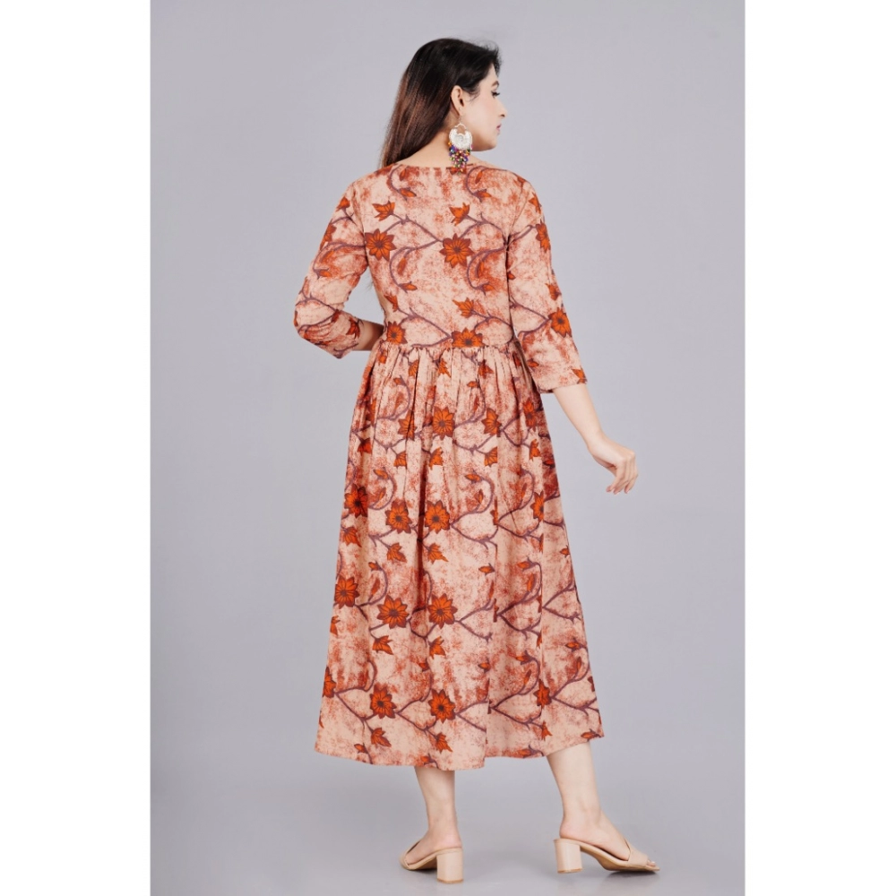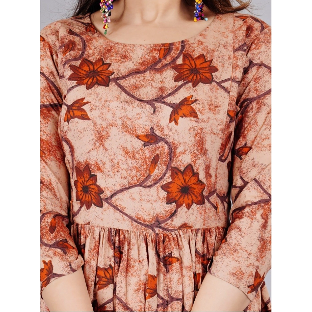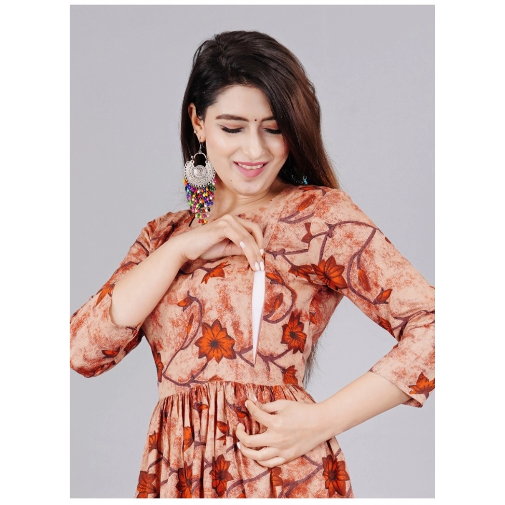 Women's Casual 3/4 Sleeve Printed Viscose Maternity Feeding Kurti (Brown)Women’s Casual 3/4 Sleeve Printed Viscose Maternity Feeding Kurti (Brown)