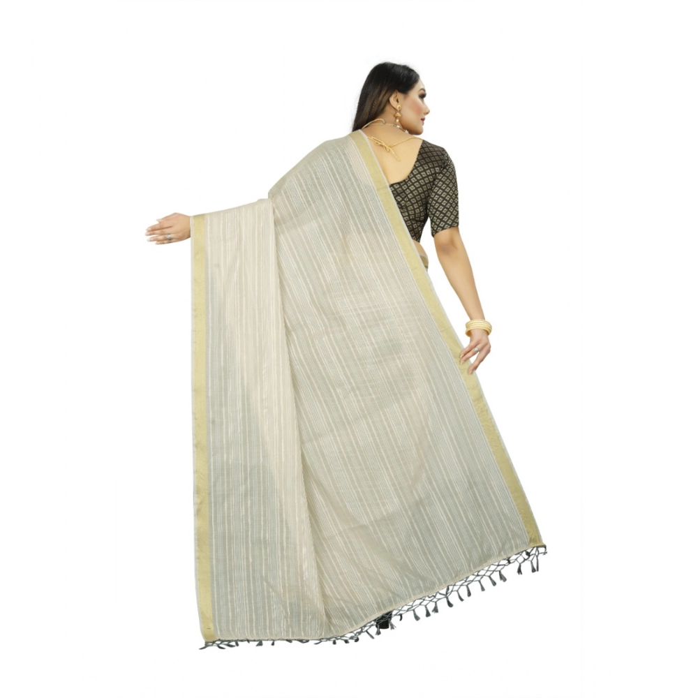 Women’s Cotton Blend Solid/Plain Saree With Unstitched Blouse