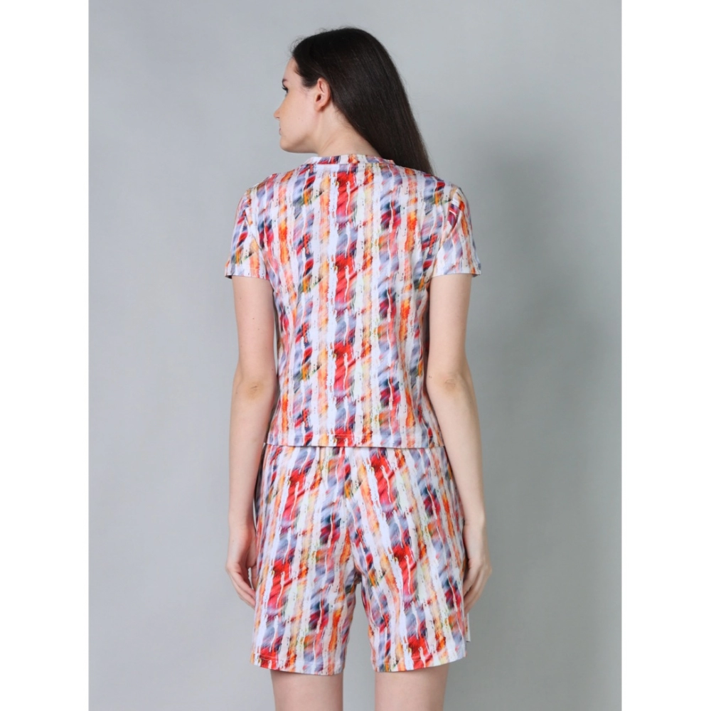 Women’s Cotton Blended Printed Round Neck Half Sleeve Top – Shorts Set
