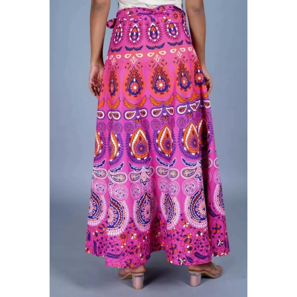 Women’s Cotton Jaipur Printed Wrap Around Maxi Skirt (Pink, Free Size)