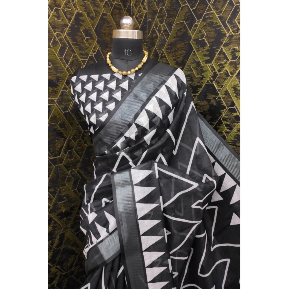 Women’s Cotton Linen Woven Design Saree With Unstitched Blouse 5.5Mtr (Black)
