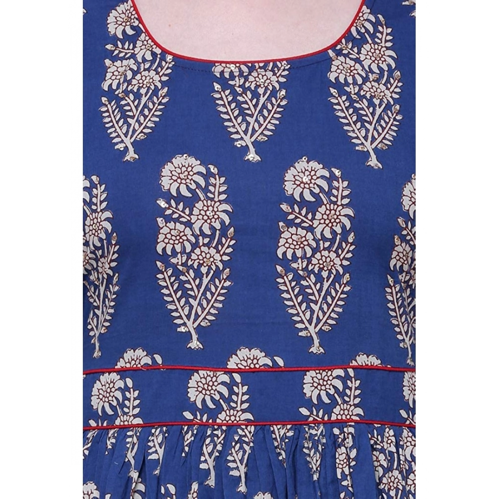 Women’s Cotton Printed Anarkali Kurti (Blue, Cotton)