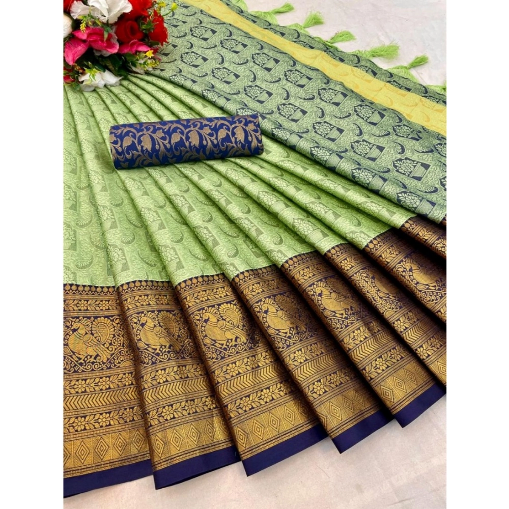 Women's Cotton Silk Printed Saree With Unstitched Blouse 5.5Mtr (Pista)Women’s Cotton Silk Printed Saree With Unstitched Blouse 5.5Mtr (Pista)