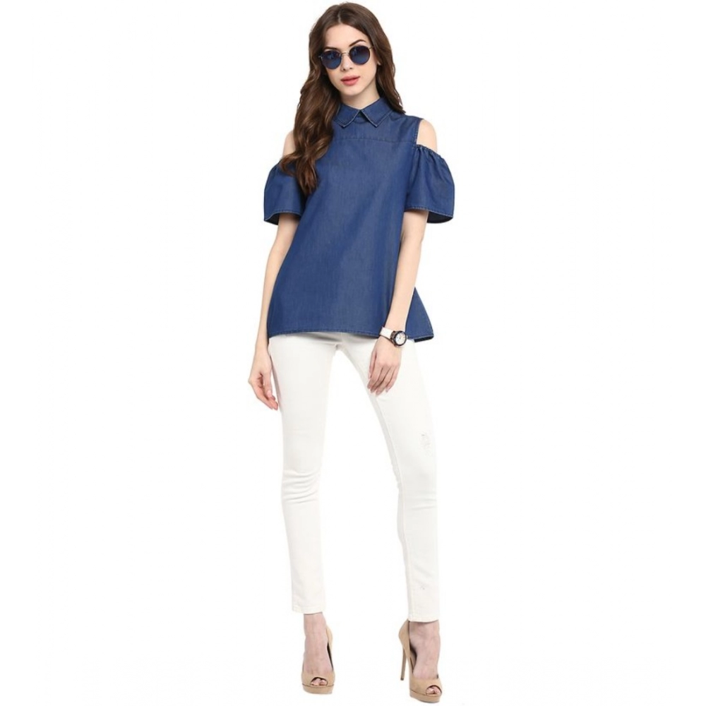 Women’s Denim Solid Cold Shoulder Regular Top