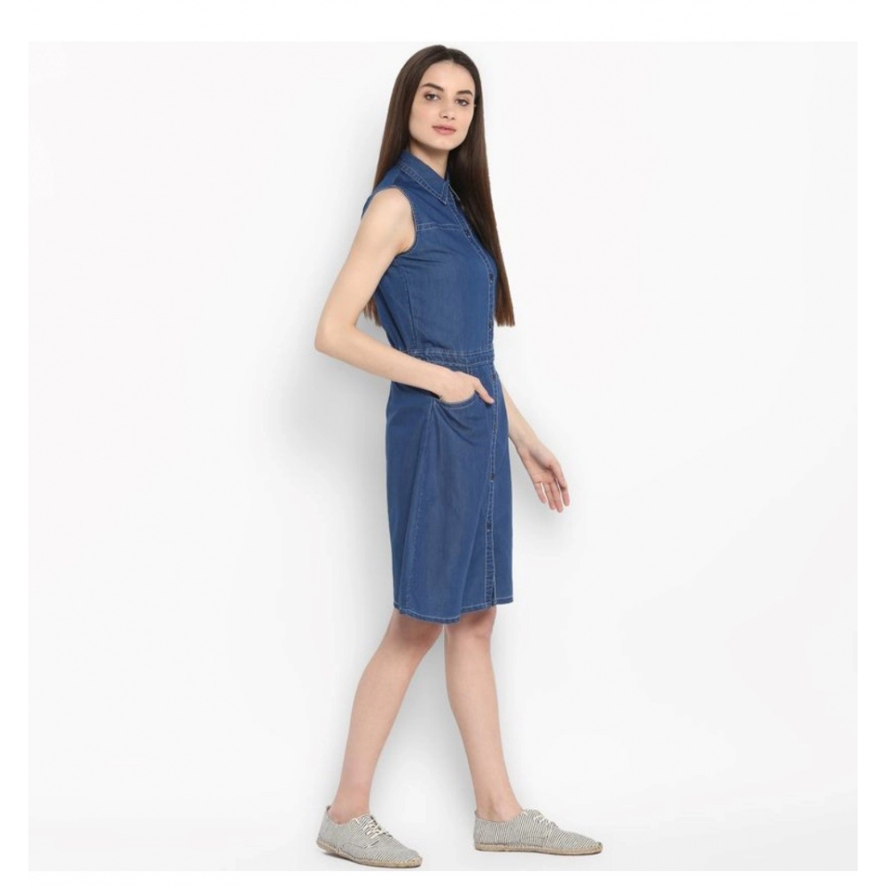 Women’s Denim Solid Sleeveless Above Knee Dress