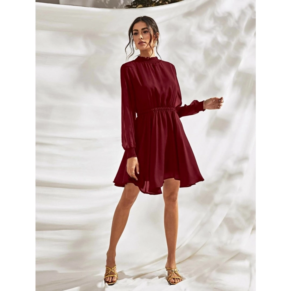 Women’s Fox Georgette Solid High Neck Full Sleeve Dress