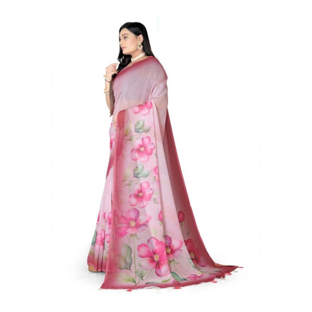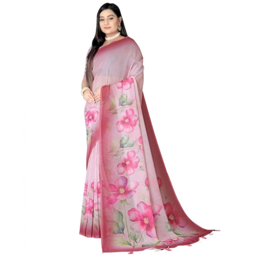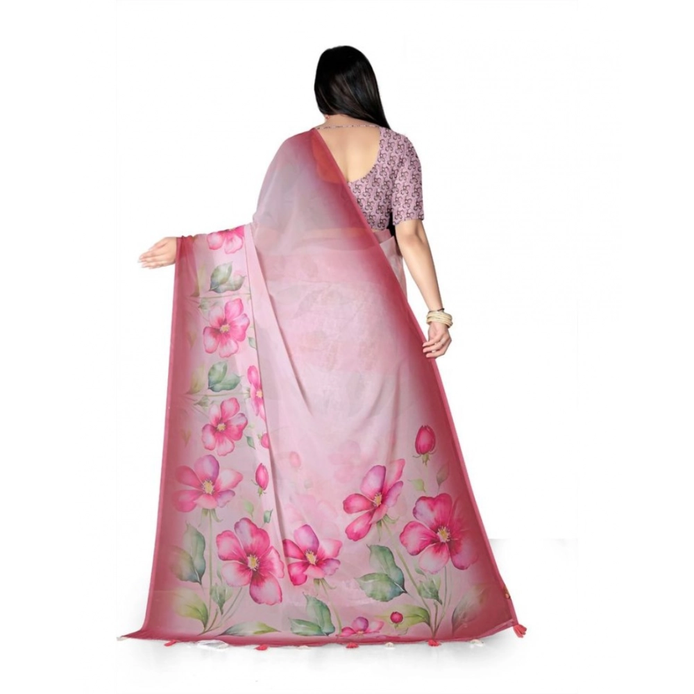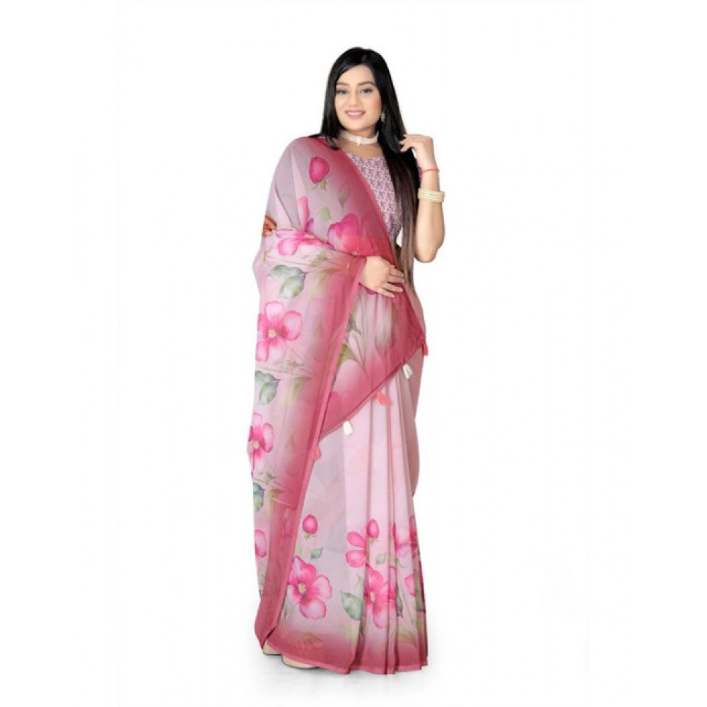 Women’s Georgette Floral Printed Saree With Unstitched Blouse 5.5Mtr (Rose Pink)