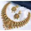 Women’s Traditional Temple Necklace and Earrings Set in Gold (Multi Color, Free Size)
