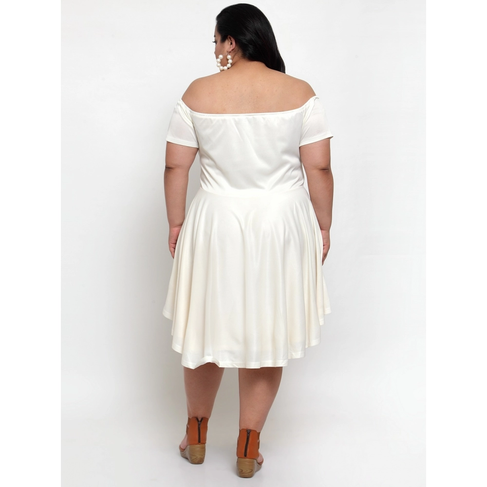 Women’s Hojri Solid Knee Length Fit and Flare Dress (Off White)