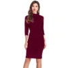 Women’s Knitting stretchable Solid Round Neck 3-4 Puff Sleeve Dress