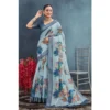 Women’s Linen Floral Printed Saree With Unstitched Blouse