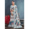Women’s Linen Floral Printed Saree With Unstitched Blouse