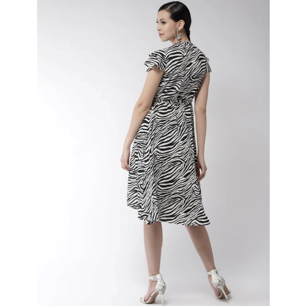 Women’s Polyester Animal Print Short Sleeve Knee-Length Dress