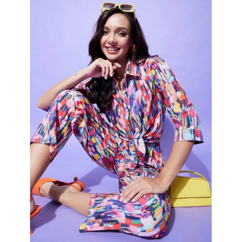 Women's Polyester Floral 3-4th Sleeve Co-Ord Set (Multicolor)Women’s Polyester Floral 3-4th Sleeve Co-Ord Set (Multicolor)