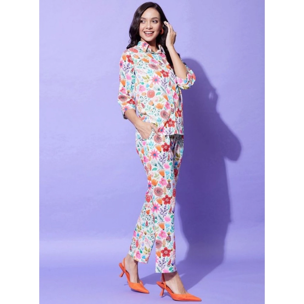 Women’s Polyester Floral 3-4th Sleeve Co-Ord Set