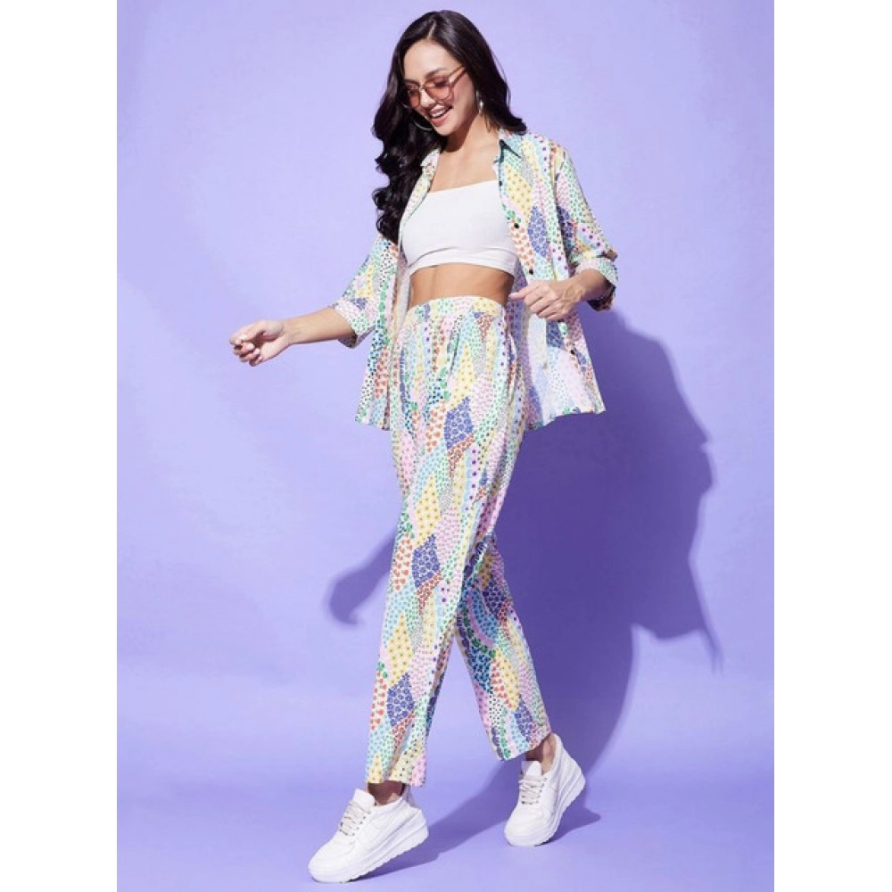 Women's Polyester Floral 3-4th Sleeve Co-Ord Set (Multicolor)Women’s Polyester Floral 3-4th Sleeve Co-Ord Set (Multicolor)