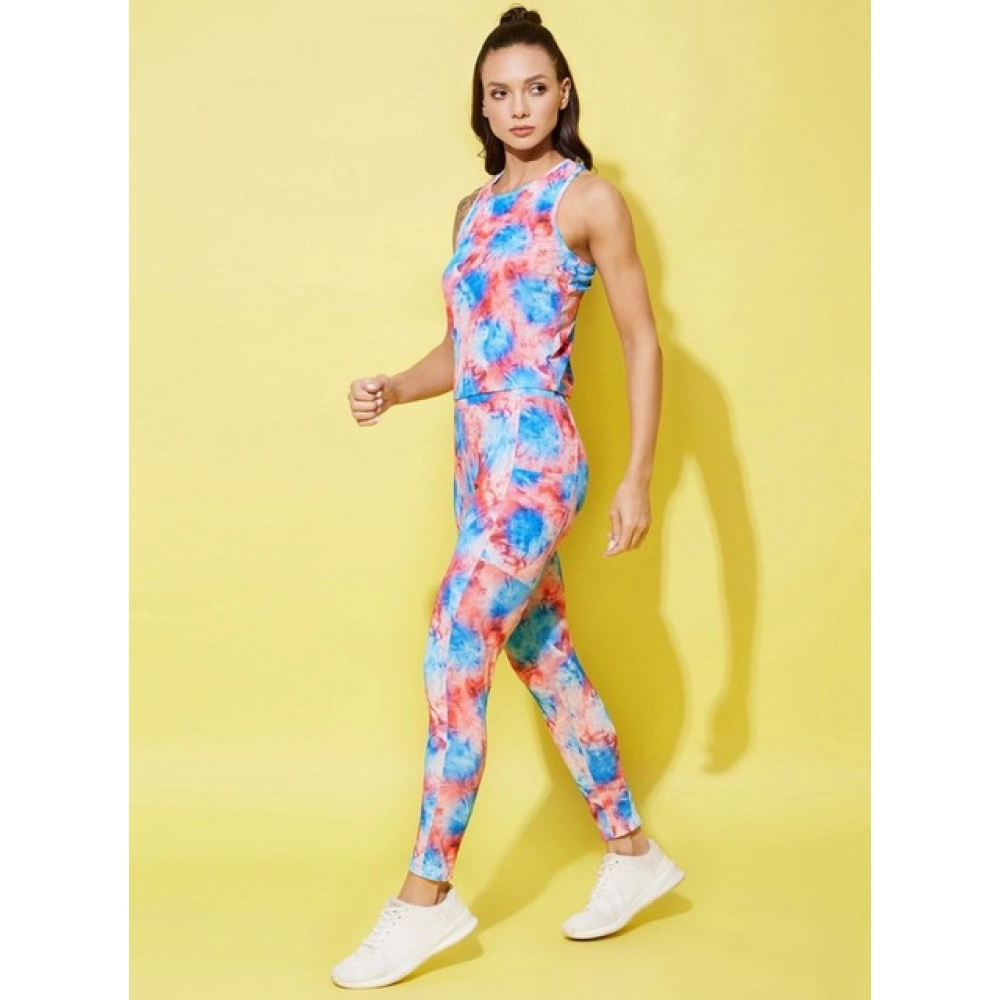 Women’s Polyester Lycra Printed Sleeveless Active Wear (Multicolor)