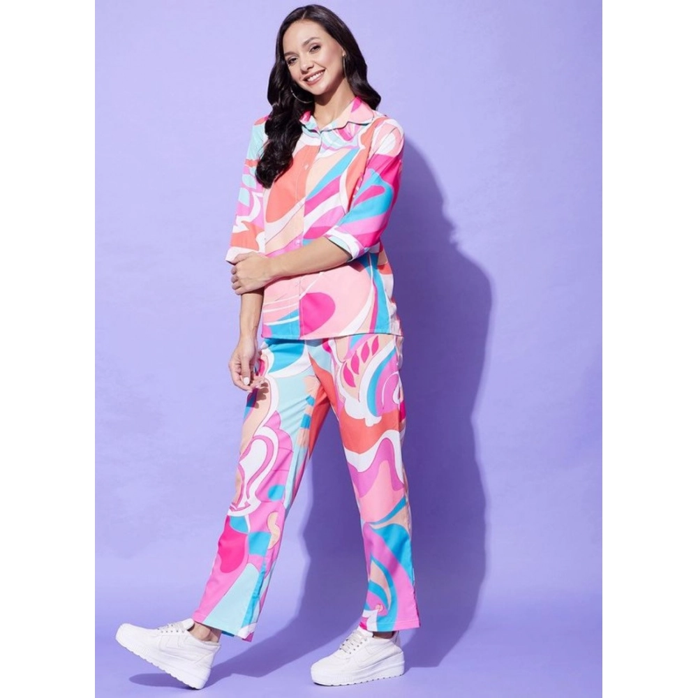 Women’s Polyester Printed 3-4th Sleeve Co-Ord Set