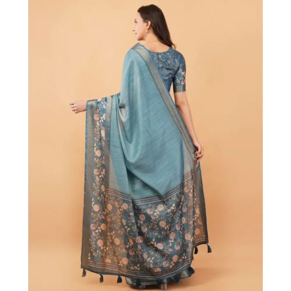 Women’s Polyester Printed Saree With Unstitched Blouse 5.5 Mtr