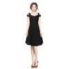 Women’s Polyester Solid V Neck Cap Sleeve off Shoulder Dress