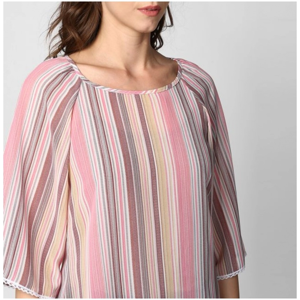 Women’s Polyester Striped 3-4th Sleeves Top