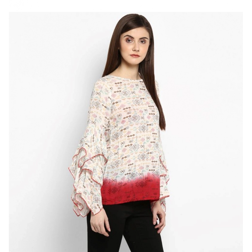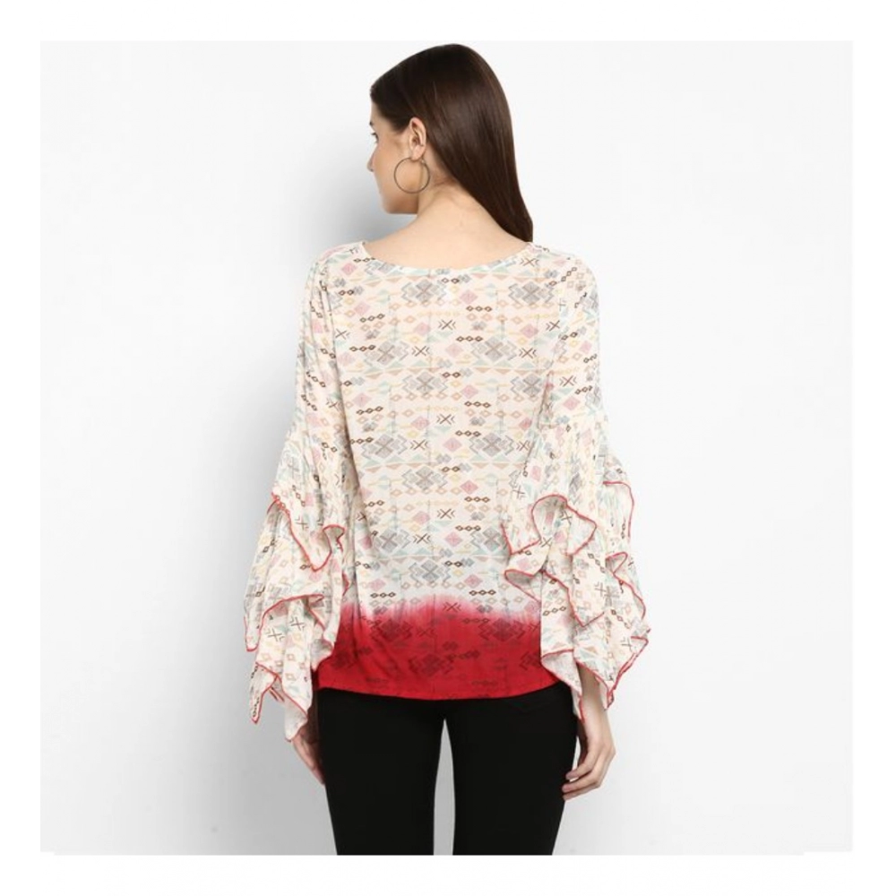 Women’s Rayon Crepe Printed Ruffle Sleeve Top