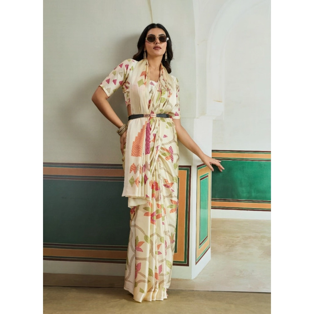 Women’s Satin Crepe Printed Saree With Unstitched Blouse 5.5Mtr