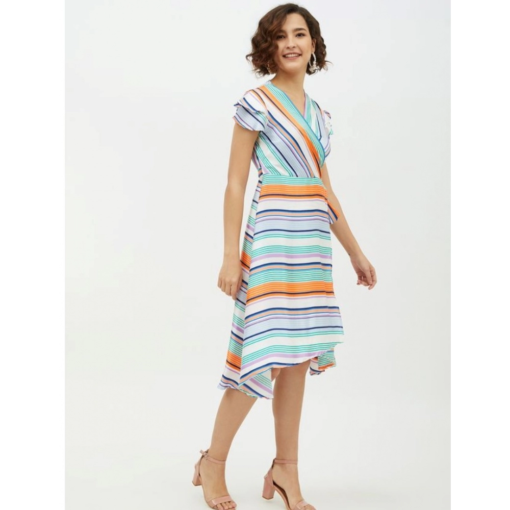 Women’s Satin Striped Short Sleeve Knee-Length Dress