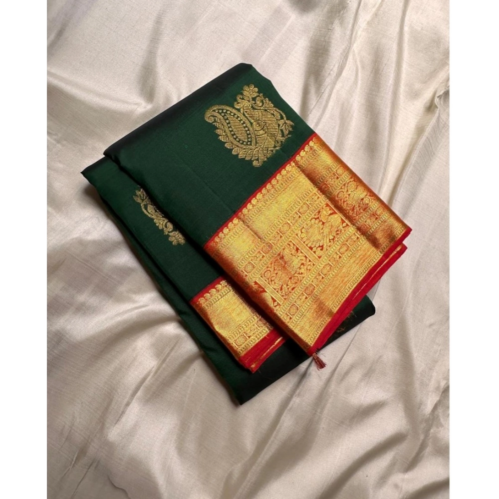 Women’s Silk Printed Saree With Unstitched Blouse 5.5Mtr (Green)