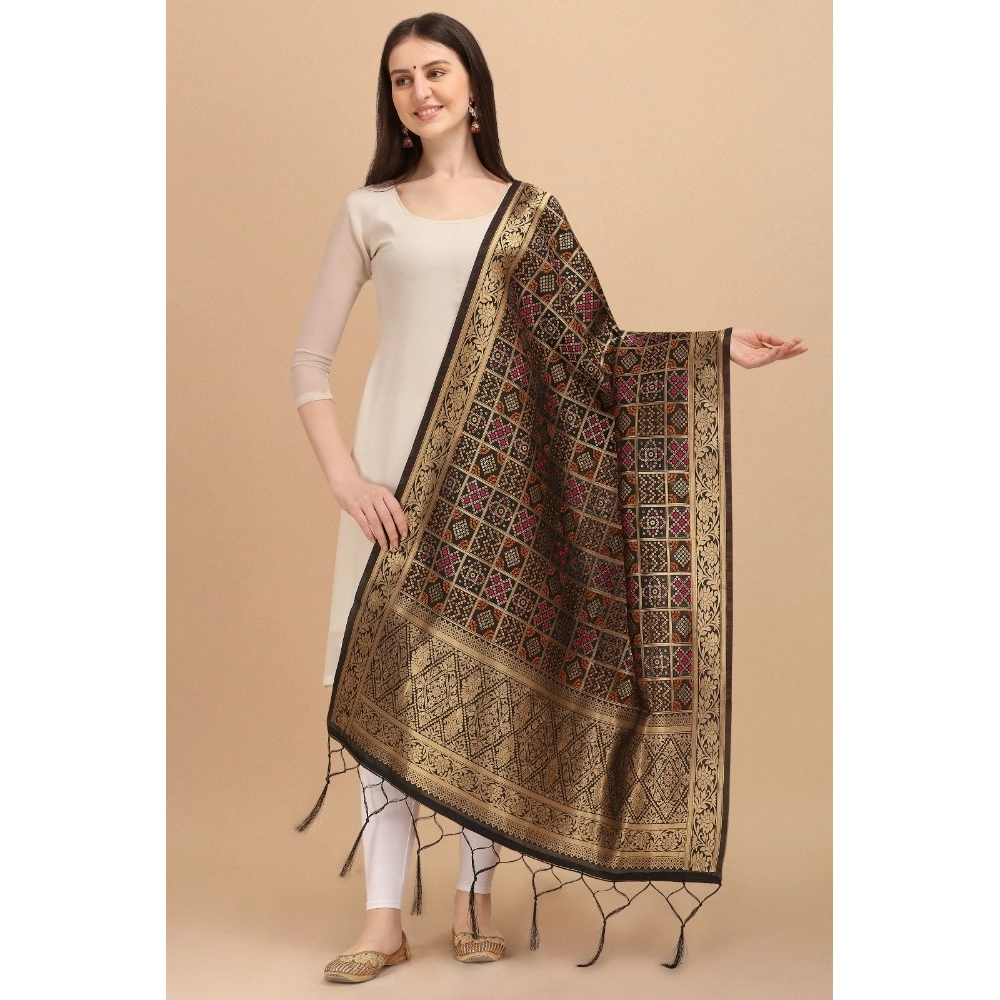 Women’s Silk Pure weaving Work Duppatta (Black, Length: 2-2.3 Mtrs)
